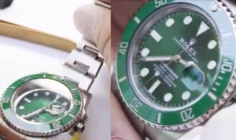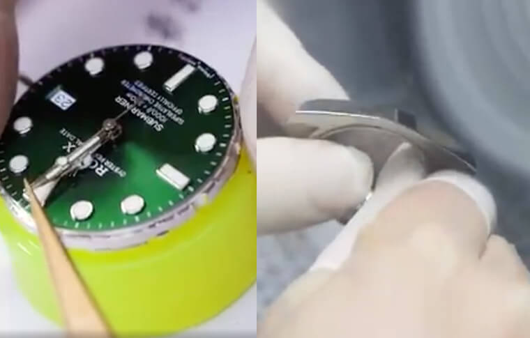 等到機芯零件清潔完成,後續就是倒回法,把零件一一組裝回去,然後再換上新的面盤和指針零件,而雖然綠水鬼的錶殼被燒到的範圍不大,不過修復師還是謹慎地把錶殼拿去重新拋光,順便換上新的陶瓷圈零件還有藍寶石水晶鏡面,然後再把機芯和錶殼重組,然後上機進行測試,等到通過檢測標準後,原本燒焦的綠水鬼又恢復成往日的光采。