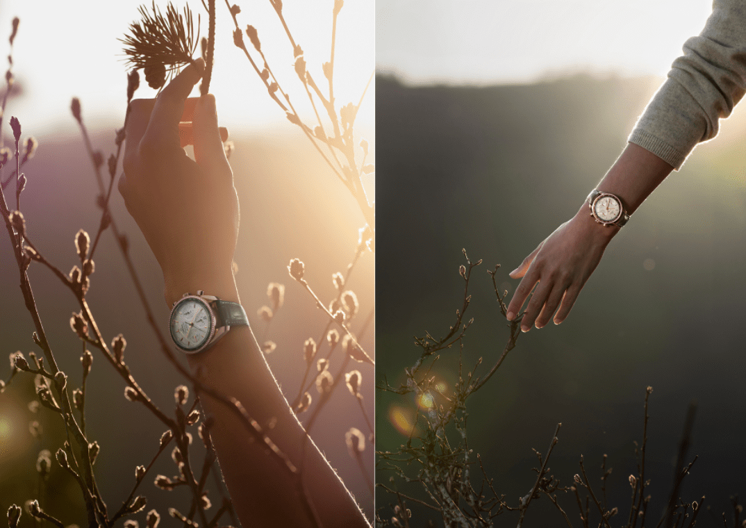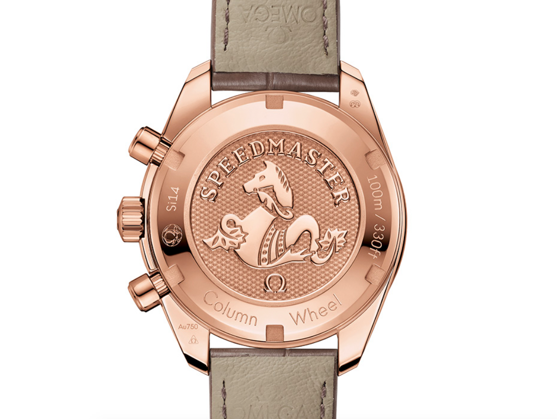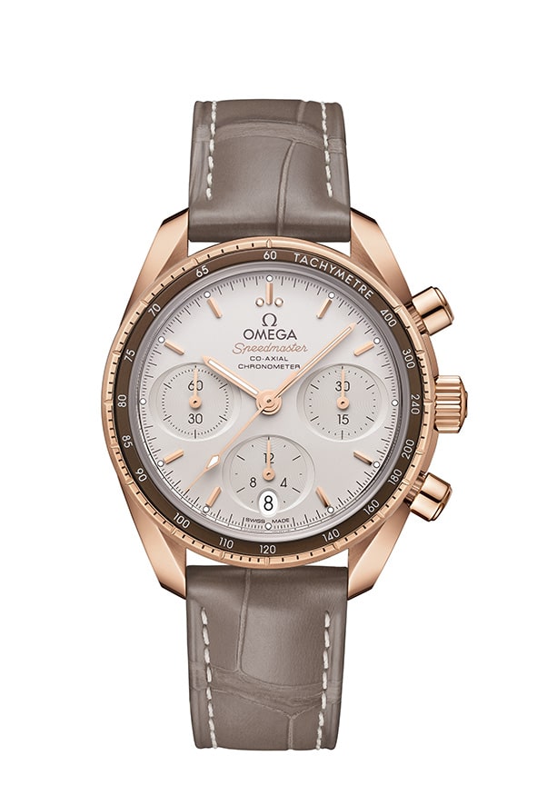 第一款新錶採用18K Sedna™金的火紅色調,並備有褐灰色皮革錶帶。此錶還依循之前款式的「Cappuccino」色調風格,搭載奶油銀色面盤。然而,歐米茄這次並未使用營造對比效果的棕色計盤,而是讓整個面盤保持同一色澤,為整體設計添入純淨簡約風情。