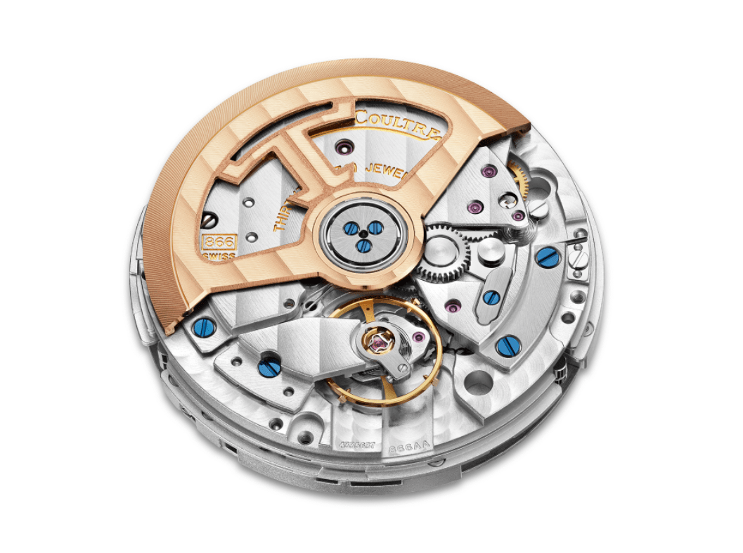 升級版866機械機芯與899機械機芯一樣,經過相同的性能改良,積家工程師更增添了賞心悅目的全新跳躍式指針複雜功能。在每個月由15日過渡至16日時,日期指針會作90度的跳躍,以免遮擋月相顯示。