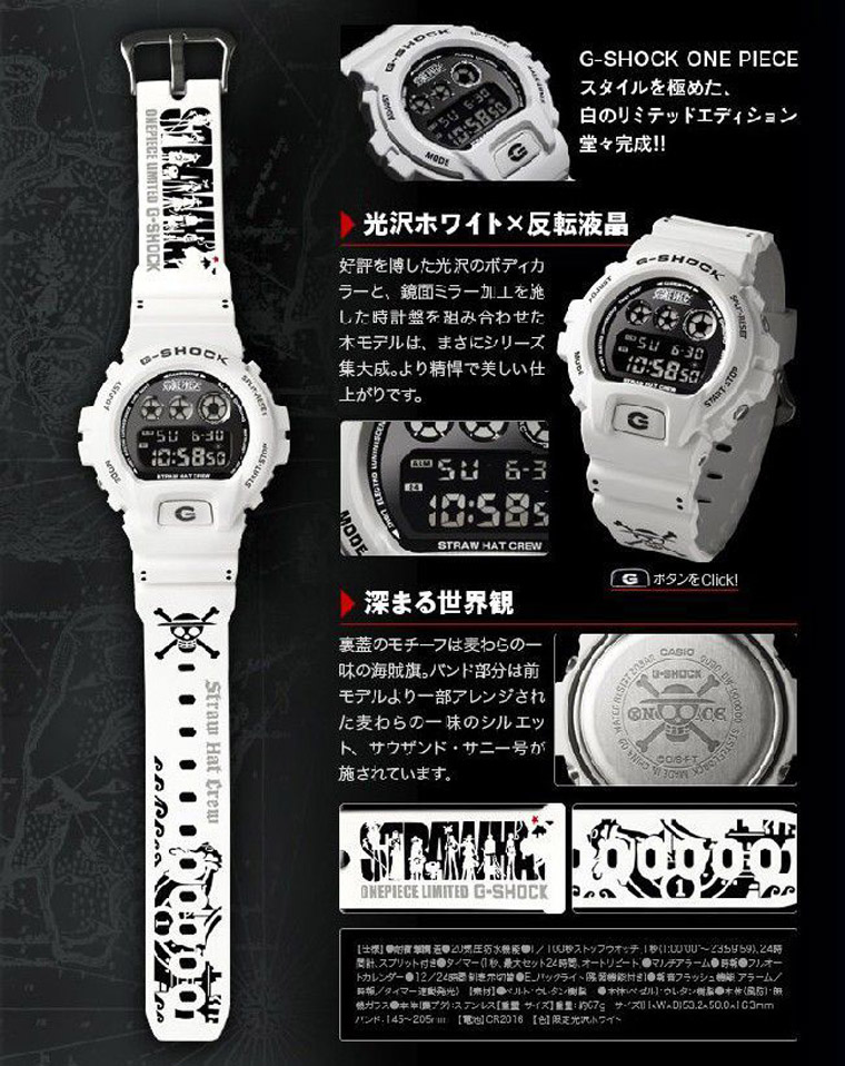 其實G-SHOCK和One Piece已經不是初次合作,雙方早在2011年開始已經合推過第一代聯名款,當時G-SHOCK一口氣推出以DW-6900和DW-5600為基礎的特別版,雖然兩款各限量9999只數量不算少,但因為很受市場歡迎,於是促成G-SHOCK在2012年緊接推出第二代海賊王聯名錶(以DW-6900為基礎),這次的限量數就少了許多,只有3000只;結果又再相隔一年,品牌再推出第三代的海賊王聯名錶(還是以DW-6900為基礎),限量數變得更少、只剩2000只,就在我們以為難道G-SHOCK之後會每年出一款海賊王聯名錶的時候,沒想到這個企劃就此停在第三代一停就是7年。