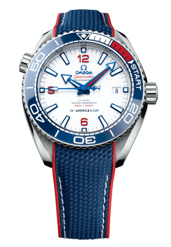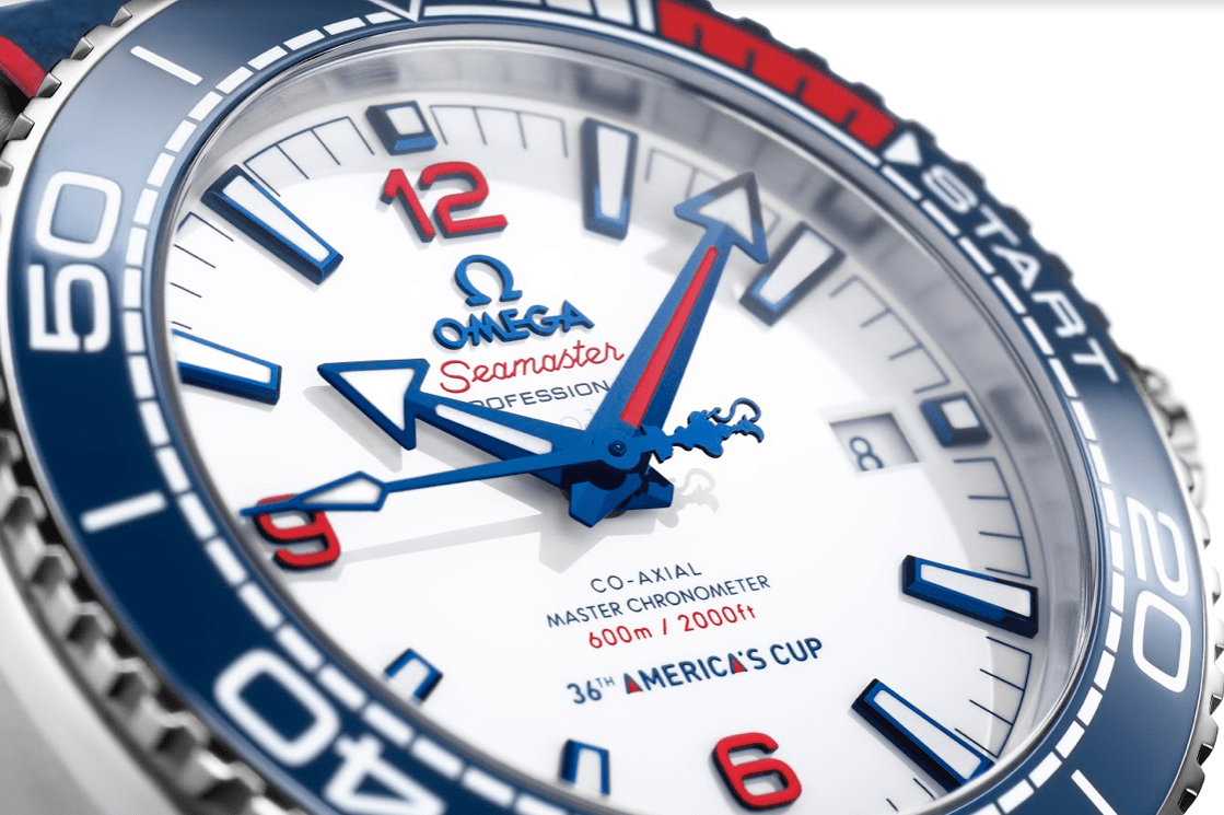 而歐米茄為這次的帆船賽事特別設計的海馬Planet Ocean第36屆美洲盃限量錶採用不鏽鋼材質與結構橡膠錶帶,並僅限量發行2,021只。最值得注意的是藍色陶瓷潛水錶圈,因為這款錶圈結合白色與紅色液態陶瓷,巧妙提供帆船賽的5分鐘倒數計時功能。此錶的拋光白色陶瓷錶盤在6點鐘位置透過轉印技術呈現參賽隊伍的名稱,中央秒針的平衡臂也設有特別的美洲盃商標。