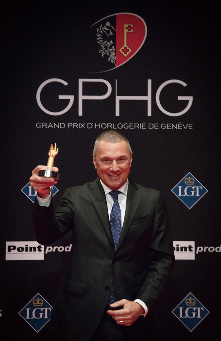 ▲2019年揭曉的日內瓦鐘錶大賞得獎名單中,寶格麗Octo Finissimo系列繼2017年勇奪最佳男錶和最佳陀飛輪雙料獎項後,再憑兩地時間計時碼錶榮獲該屆最佳計時碼錶獎項,品牌總裁Jean-Christophe Babin於頒獎典禮當日代表寶格麗出席領獎。