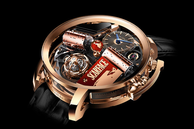 ▲JACOB & CO.以旗下音樂錶Opera系列為基礎,並融入1980年代經典黑幫電影《疤面煞星》元素,打造出限量新款Opera Scarface。