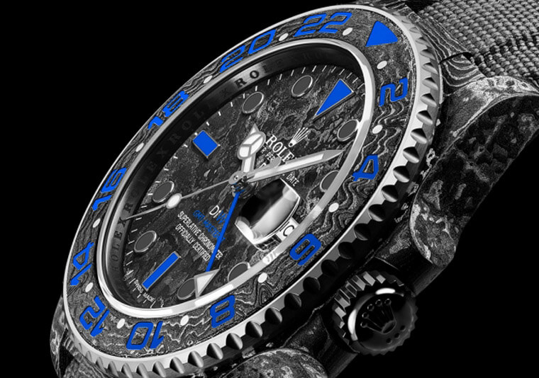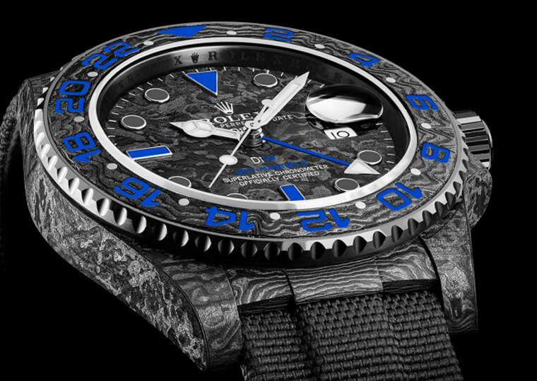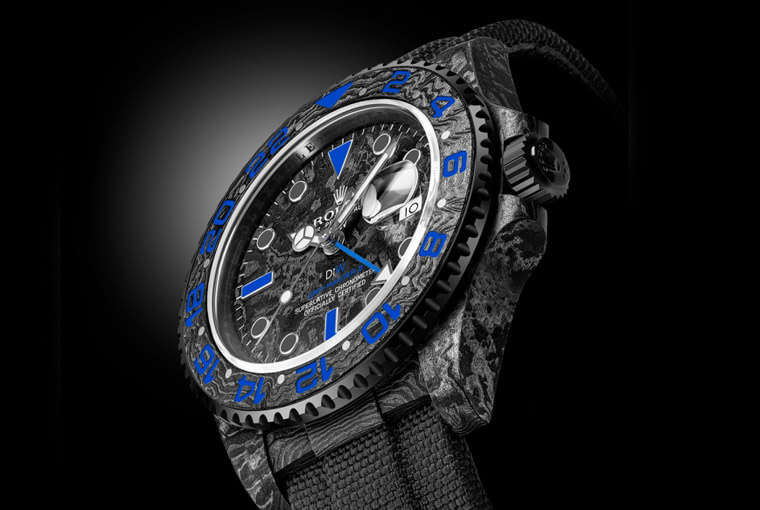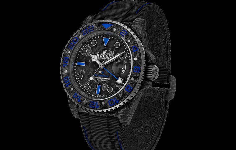 ▲DiW新作Electro Carbon是以GMT-Master II為基礎,主要特色就在於把不鏽鋼錶殼換成了超輕量的碳纖維材質。