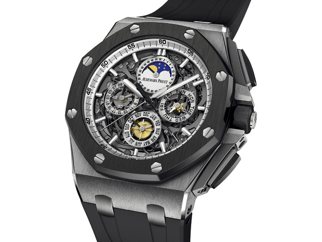 '10年皇家橡樹離岸型推出陀飛輪計時碼錶組合後,此次推出萬年曆計時碼錶以及大複雜手錶,拓展系列功能強度。