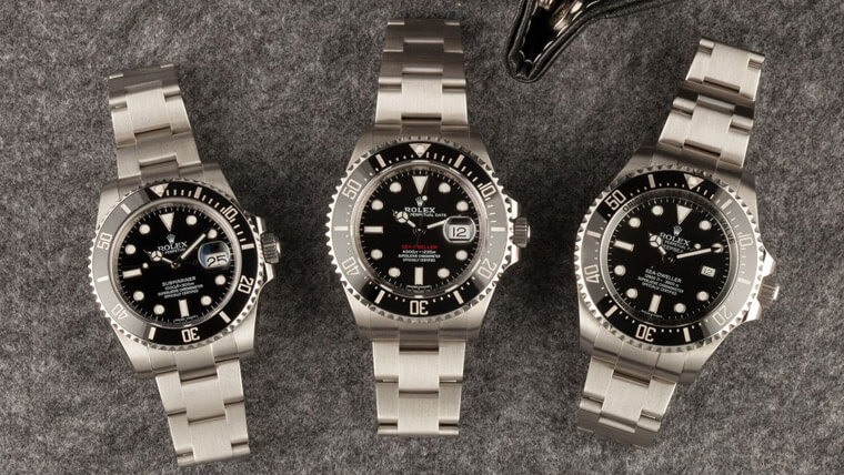 以上提到的勞力士潛水錶家族算一算共有2大系列、4種不同款式,它們分別是Submariner、Submariner Date、Sea-Dweller和Deepsea。其中最入門的就是不帶日期的Submariner 114060,目前這款就只有唯一的不鏽鋼搭配黑面款式,至於與114060系出同門的Submariner Date版本變化就多了,除了有不同錶殼材質,面盤和錶圈配色也是勞力士潛水錶家族中最豐富的,Submariner Date也是品牌潛水錶中目前唯一有出全K金錶殼的作品,包括黑面、藍面與綠面,以及不鏽鋼、半金和K金共有7個版本。