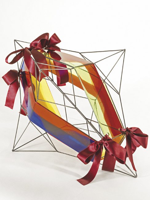 使用鋼棒、紅色緞帶與彩帶所完成的不規則多面體,支架所構築的主體空心沒有重量,是一件以有/無的辯證關係來詮釋時間的作品。