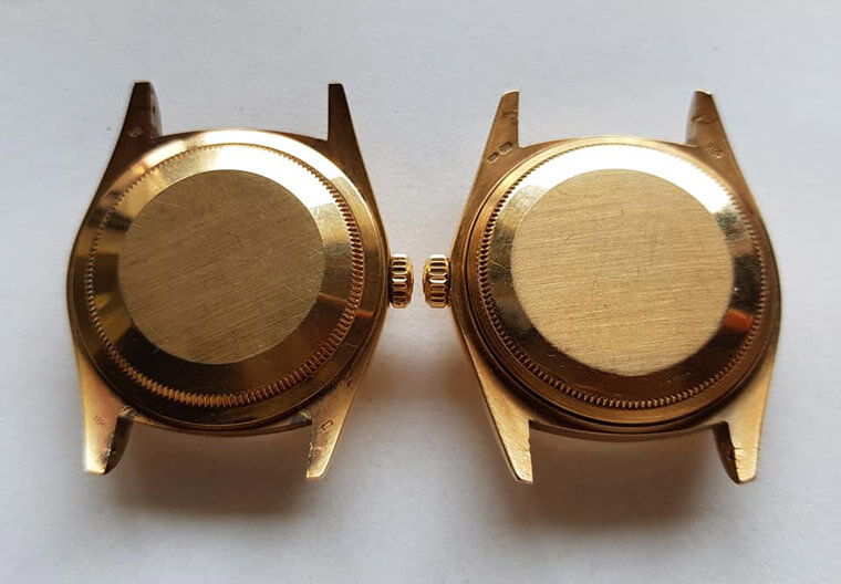 ▲左為16238,右為16018(錶冠側面看起來比較厚)。