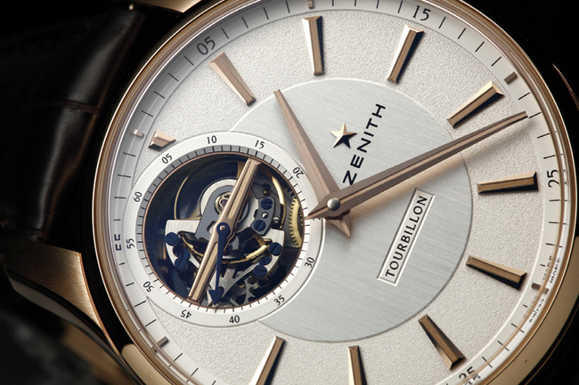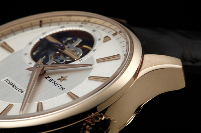 這款陀飛輪是Captain的唯一一款高階複雜功能,不過某個程度上也可以說是相當基本款的一只高階複雜功能。ZENITH的陀飛輪錶很少會只有陀飛輪一項功能,至少會加上一個計時碼錶(畢竟是由El Primero機芯改制的),或是最近還流行在陀飛輪外圈加上日期,這款卻真的只有兩針加上陀飛輪(還有上頭的小秒針),以ZENITH來說真的是陀飛輪的基本款了。機芯加裝的是ZENITH標準的陀飛輪模組;ZENITH的陀飛輪外觀上並沒有什麼華麗的特徵,算是比較務實的設計,而這款的不是飛行陀飛輪,整個裝置的正面仍然有橫跨式錶橋。