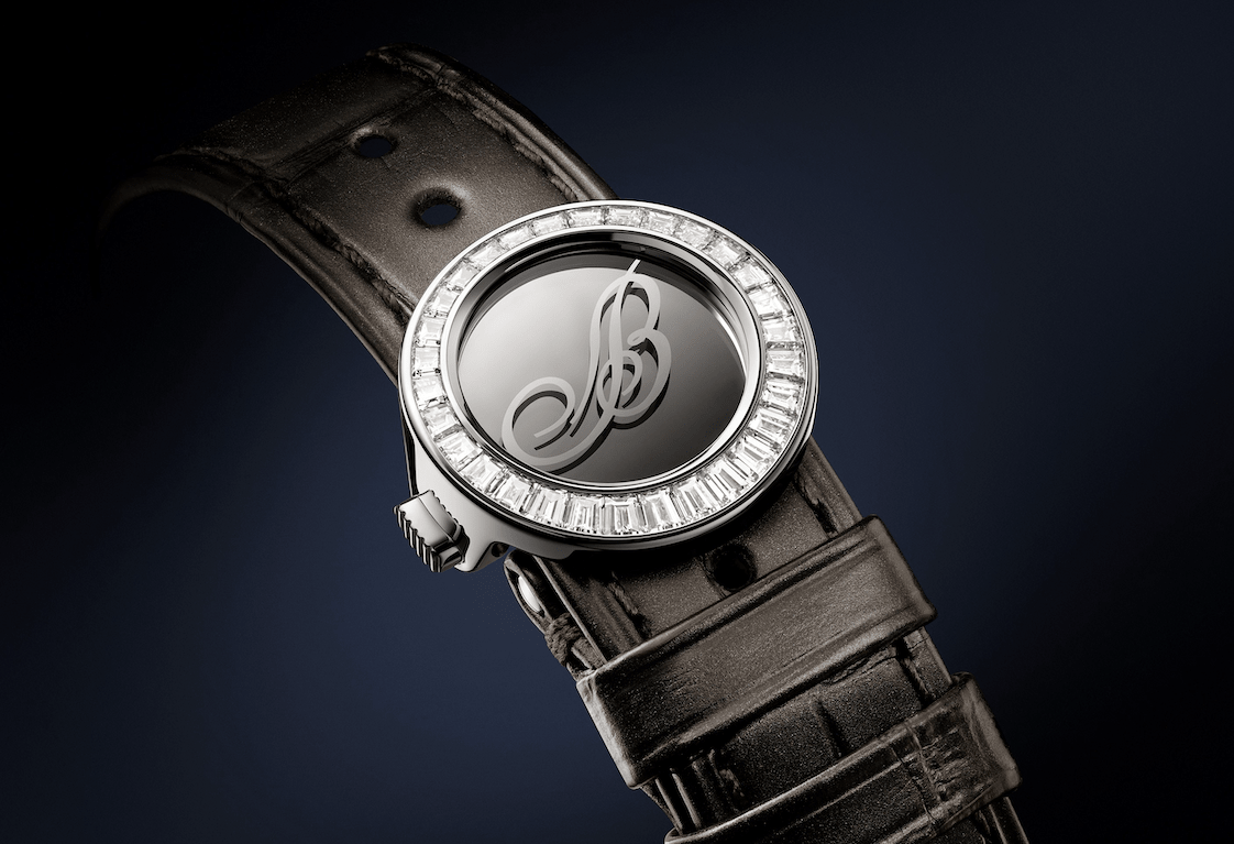 ▲錶扣亦綴以璀璨美鑽,與鑲鑽錶圈和寶璣鏤空指針互相輝映。在金屬錶扣中央,飾以代表寶璣(BREGUET)的「B」字引人注目。