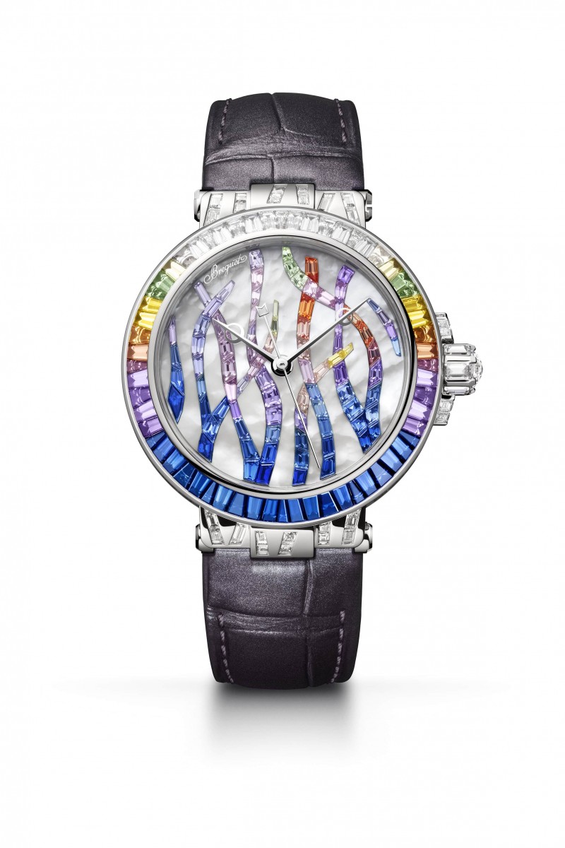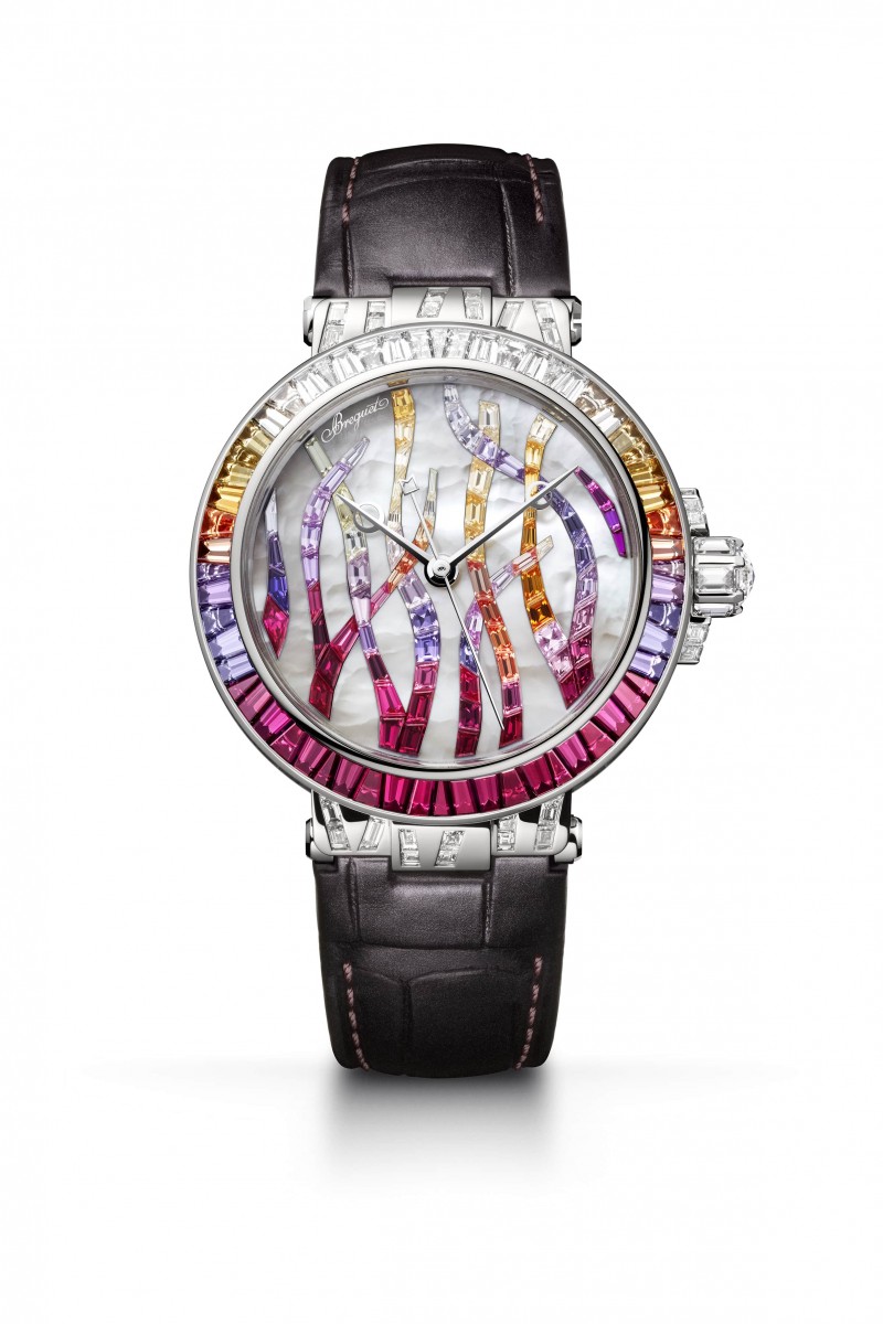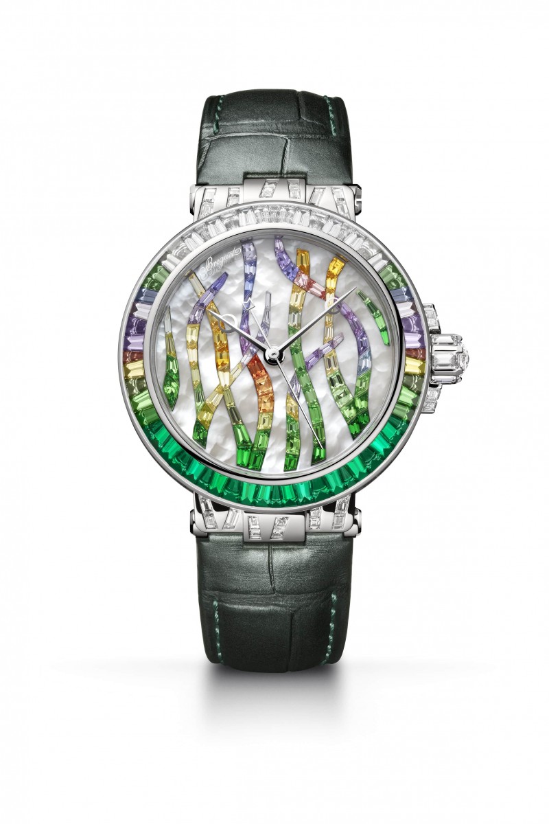 BREGUET寶璣2020年藉由全新Marine航海系列Haute Joaillerie Poseidonia 高級珠寶腕錶的精巧玲瓏設計,精湛演繹海洋的迷人之美。透過精緻珍珠母貝鑲嵌工藝和隱密式鑲嵌藝術,讓手錶呈現此植物的蔓藤花紋。