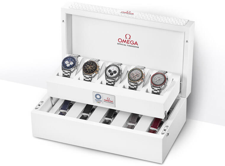 ▲歐米茄於2019年先一步推出以奧運五環為創作概念的五款超霸登月錶東京奧運限量版。