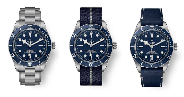 ▲新款Black Bay 58共有三種錶帶可選,包括鍊帶、皮帶與織紋錶帶。