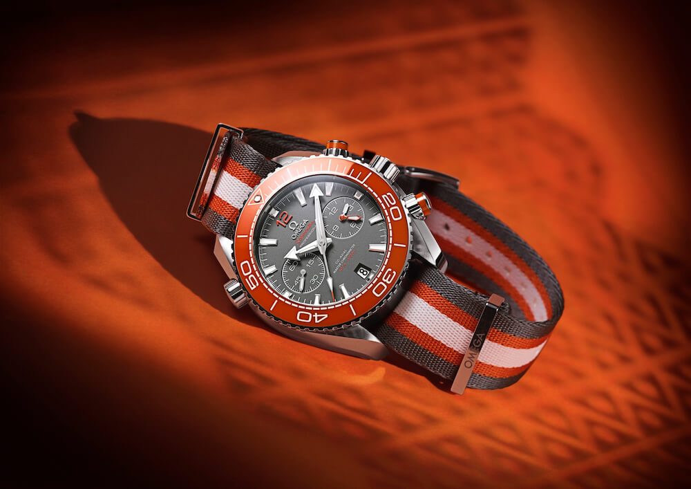 海馬Planet Ocean 600M最早在2005年推出,當時橘色烤漆錶圈搭配黑色面盤很快奠定系列的招牌風格,不過隨著之後歐米茄開始慢慢換上陶瓷錶圈,橘海馬有一陣子彷彿消失在我們的記憶中,市售款中大概只剩下部分Planet Ocean 600M計時錶低調地傳承這個歐米茄的代表色。