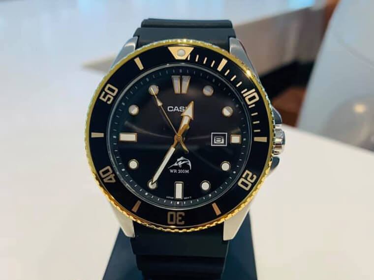 隨著GA-2100系列愈出愈多款式,加上話題熱度已經有點疲乏,現在農家橡樹的搶手程度已經慢慢下降,最近有錶友在愛錶咖社團上開箱一只他新買的CASIO手錶——MDV-106半金配色款,也就是長得有點像水鬼的槍魚潛水錶,原Po表示「繼農家橡樹之後,卡西歐的槍魚會不會又炒熱市場一波呢?畢竟連比爾蓋茲也戴過這只。」話題一開引起其他錶友的興趣並加入討論。