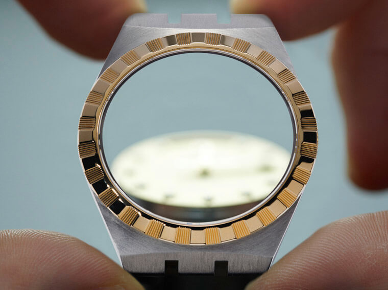 ▲Royal系列的金屬錶帶,與錶殼為一體成型的設計。