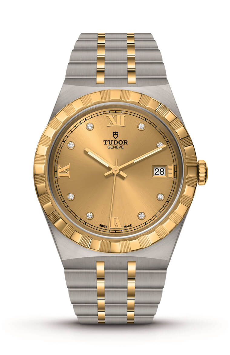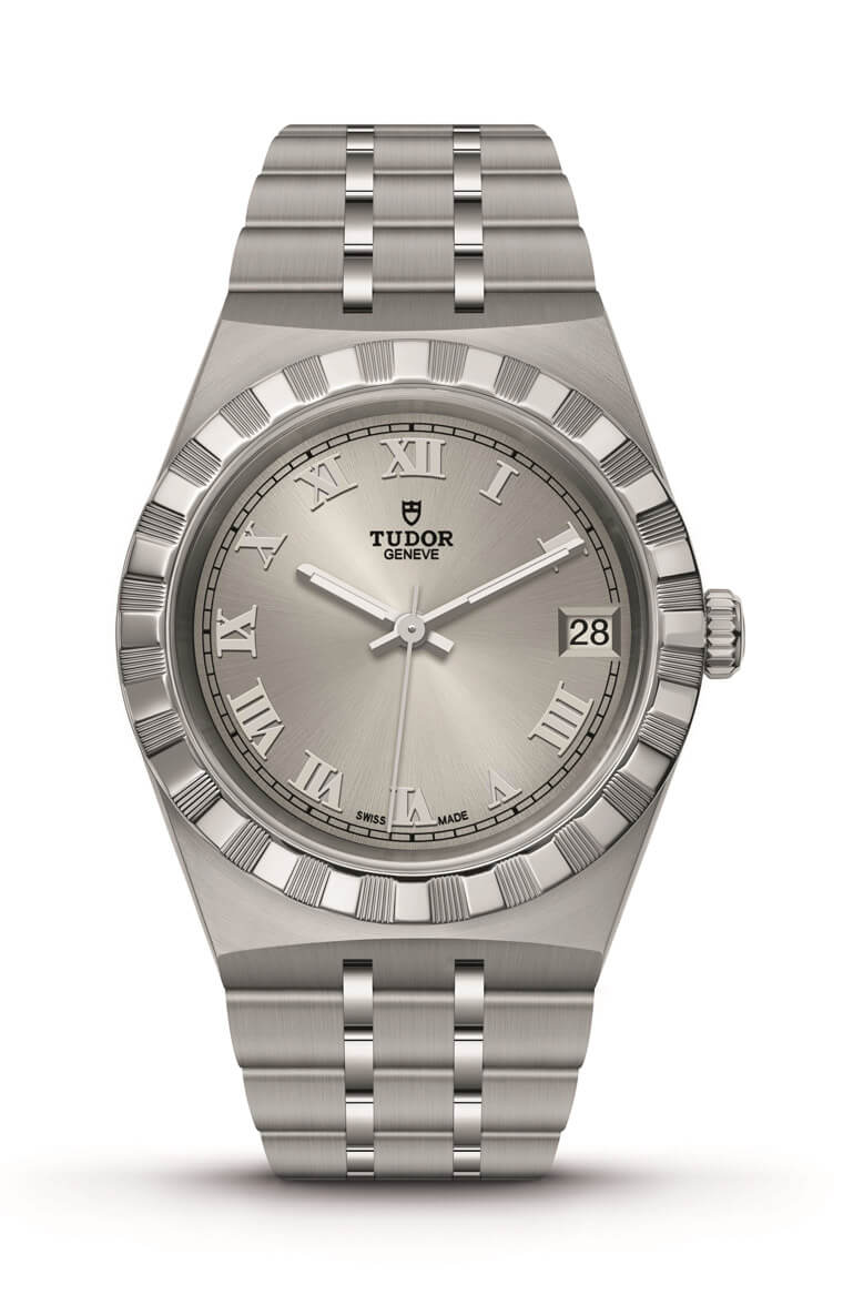 而在面盤格局方面,除了41mm自成一格多了星期顯示之外,Royal系列面盤清一色都採軌道式刻度搭配羅馬數字時標的樣式,不同尺寸版本除了有黑色、銀色、香檳色或藍色太陽紋面盤外,其中28mm和34mm款還有配置珍珠母貝加上時標鑲鑽的女錶版本,另外38mm和34mm也有太陽紋面盤搭配時標鑲鑽的版本,這樣一來堪稱把該有的款式都出完了一輪。