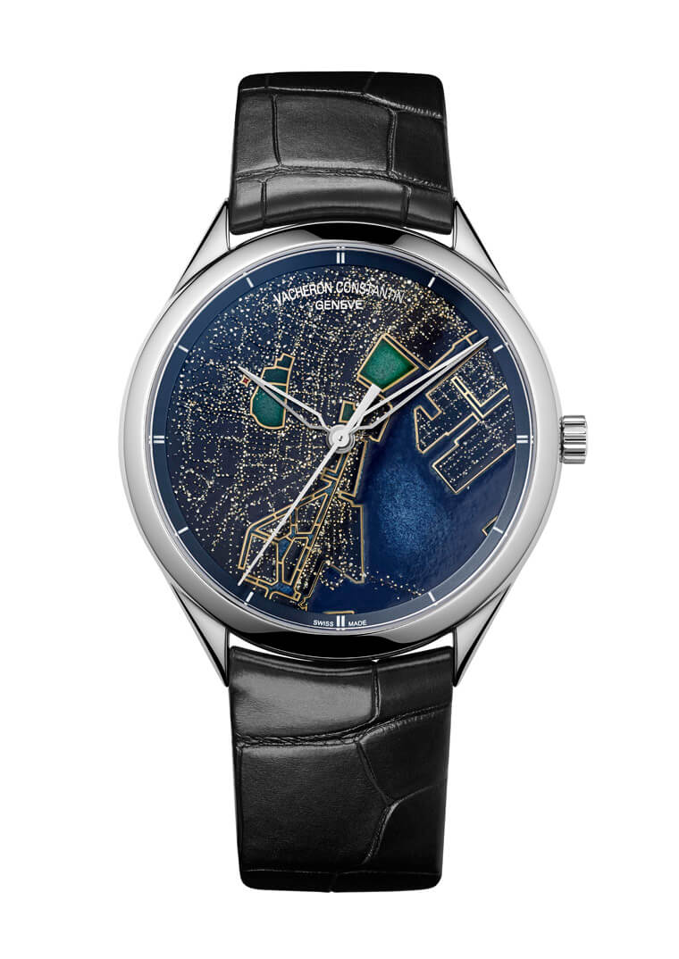 有別於另外四座城市,江詩丹頓使用琺瑯為東京灣帶來了藍色,黃金斑點突顯了東京象徵性的地理位置:銀座豪華購物區、東京鐵塔,霞關和永田町、彩虹橋以及時尚醉人的六本木等景點。面盤充滿活力的夜間地圖完整描繪出日本首都的招牌印象,佩戴在手上讓閱讀時間成為一種視覺娛樂與享受。