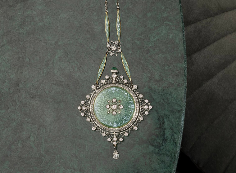 下午茶——飾以鑽石和琺瑯的鉑金及黃金女裝吊墜錶(1910年)