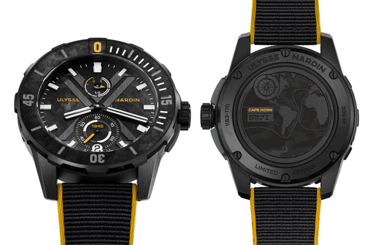 位於南美洲智利最南端的合恩角是Vendée Globe帆船賽必經地,該地區也是整個賽段最為兇險的航線之一,參賽選手必須克服冰山、狂風和危險的海流。每款Diver X合恩角錶款背面都印有合恩角的地理座標以及Vendée Globe的比賽路線。錶款採用碳材質錶圈,面盤刻有緞黑色“X”標識浮現於6點和12點之間,橫跨整個面盤。,而錶帶以黑色及鮮黃色邊線搭配,展現香料之路和環繞火地群島Tierra del Fuego的危險之旅。合恩角錶款限量發行300只。織物錶帶採用頂尖技術製作而成,質量輕盈與超輕碳材質面盤相得益彰。