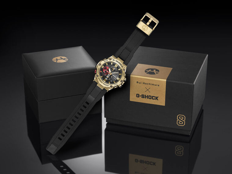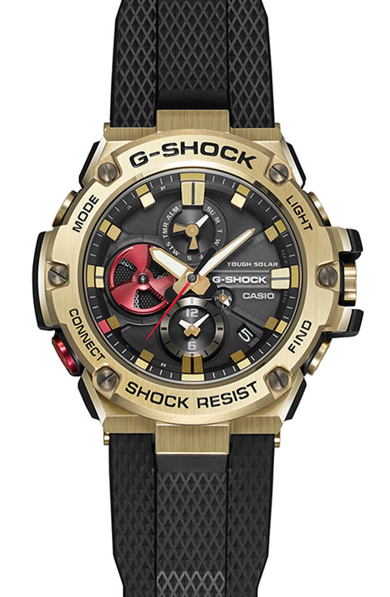 而在功能方面,錶款具備BLUETOOTH®智慧藍牙連線功能,只需按下按把即可與智慧手機連結,同步手機上的時間之外,也能透過手機設定與操作世界時間、鬧鈴、倒數計時、碼錶、指針位置校正、兩地時間切換、手機尋找等豐富功能。GST-B100RH配置能自動充電的Tough Solar太陽能機芯,並具備防水200米、高亮度LED照明及夜光指針設計,展現出當年讓八村壘驚豔不已的強大機能。