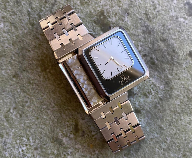 手錶品牌歷史愈久累積的作品也愈多,因此早期的一些創作拿到現在來看就會覺得很有意思,例如創廠超過170年的OMEGA歐米茄就有不少值得品味的經典創意(或者也可以說是怪錶 XD)。最近國外IG部落客分享了一款特別的歐米茄古董錶,那是一款基本功能的石英錶,誕生的時間點也是在石英革命風行的1980年代左右,單憑第一眼外觀看起來不覺得它有什麼特別,頂多就是矩形錶殼和鍊帶的設計跟現代手錶的主流樣式不太一樣而已。