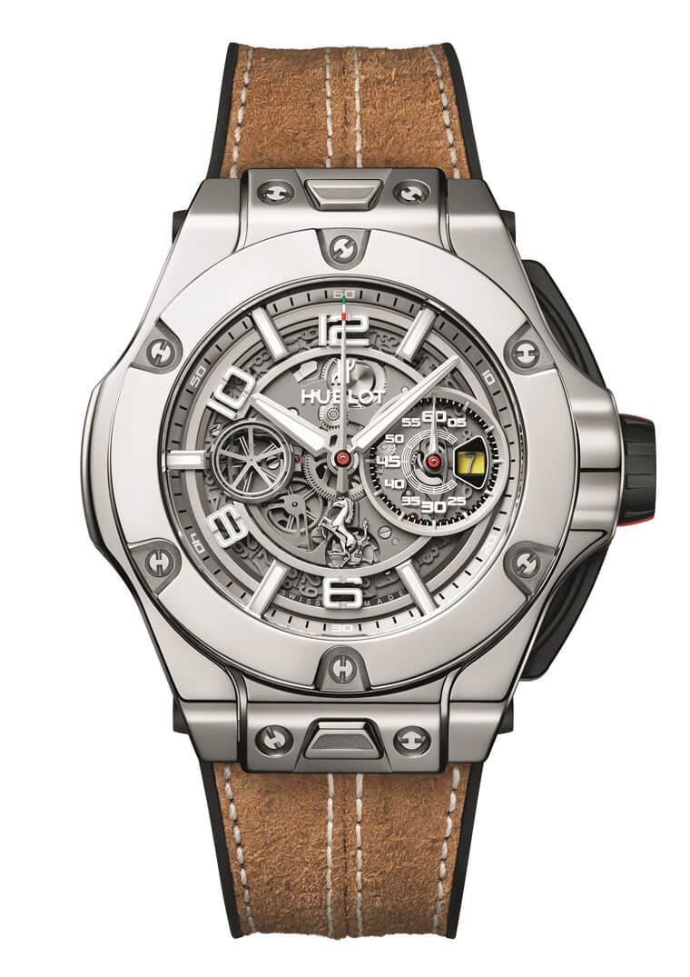 白金材質/UNICO HUB1243自動上鍊機芯/時、分、小秒、日期顯示/計時碼錶功能/藍寶石水晶鏡面、透明底蓋/防水100米/錶徑45mm/限量20只/參考價:NT$ 1,635,000