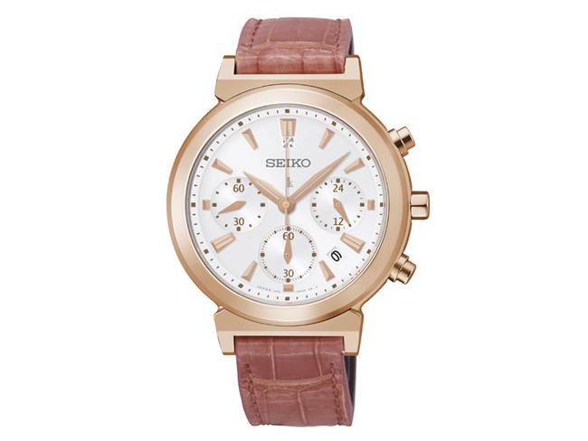 在2013年品牌春夏新品的設計主軸上,SEIKO Lukia以率真昂揚的自信與優雅為核心概念。圓形錶款(SSC898J1)承襲時下流行的中性大面盤俐落設計,以玫瑰金為錶圈增添柔美氣息,搭配面盤上光芒耀眼的金屬時標; 12點鐘璀燦奪目的單顆美鑽與鱷魚皮錶帶,充分詮釋讓職場女性自信大方中,不失溫柔,同時帶點低調奢華的風格。此錶款採用超防眩藍寶石水晶鏡面(Super Clear Coating),無鏡面的清晰自然視感,更耐碰撞及磨損。