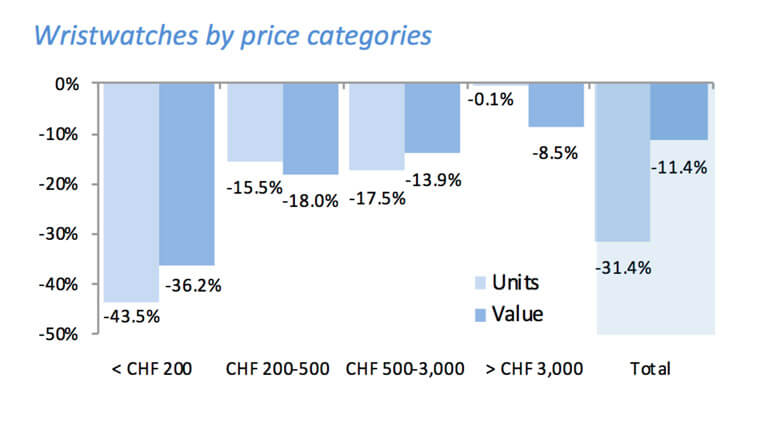 之所以會導致瑞士手錶2020年8月份出口額和出口數量比2020年7月下滑的主要原因與其他材質、不鏽鋼材質以及其他金屬材質等三類手錶的出口數量與出口額都持續下滑有關,其中其他材質和不鏽鋼材質在2020年8月的出口數量至少下跌24.8%以上,影響所及佔瑞士手錶出口額金額最高比重的不鏽鋼手錶,其在2020年8月僅繳出5億4970萬瑞郎的數字,比其上個月逼近6億瑞郎大關的表現的確是退步了。