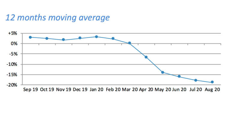 此外有關手錶價位的分類項目部份,一如2020年7月,8月份下滑最嚴重的還是定價低於200瑞郎的入門款式,它在該月無論出口額(-36.2%)或出口數量(-43.5%)都比其他價位級距要下跌很多,其他包括200~500瑞郎、 500~3000瑞郎乃至3000瑞郎以上價位的手錶在2020年8月的出口數字都比之前要好,反而是最入門的產品還在持續下探低谷。