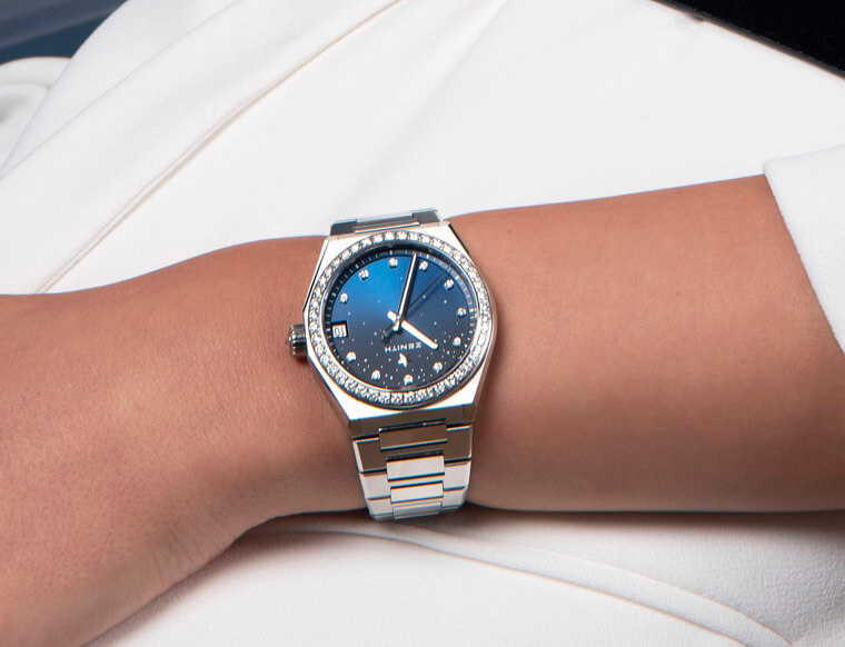 ZENITH真力時近年對女錶市場的重視與日俱增,品牌旗下的女錶系列最深植人心的非Elite莫屬,後來包括Pilot系列也推出較小錶徑符合女性需求的款式,到了2020年,真力時近年崛起的Defy系列也赫然出現首見的女錶作品——Defy Midnight,其以有別於系列多數錶款的簡約細緻風格,自成一派時代女性的樣貌。