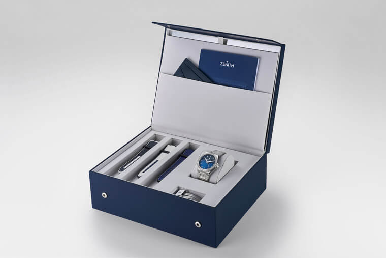 ▲Defy Midnight除了原廠配置的不鏽鋼鍊帶,特製錶盒內還附有3條彩色錶帶和可更換的折疊式錶扣可供錶主自由替換。