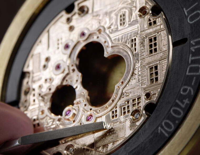 ▲基板以人手精雕,將這款手錶的工藝水準伴隨複雜功能推向更高境界。