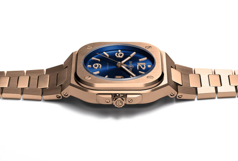 BELL & ROSS柏萊士2019年最讓人有記憶點的作品要屬BR05系列,因為它打破了品牌長期以來招牌的方形錶殼設計,以方中帶圓的嶄新形象示人,遊走於運動錶和正裝錶的風格剛好符合目前市場所需。BR05系列自從推出後,擴展的速度也算頗快,從一開始的不鏽鋼大三針、鏤空限量版,後來還衍生出衝破百萬的玫瑰金版本,到了2020年又再新增半透明藍面鏤空和半金款式,至於近期品牌再度發表新款,嚴格來說新作其實就是顏色改款,將先前玫瑰金版本的黑面改為近年風行的藍面。
