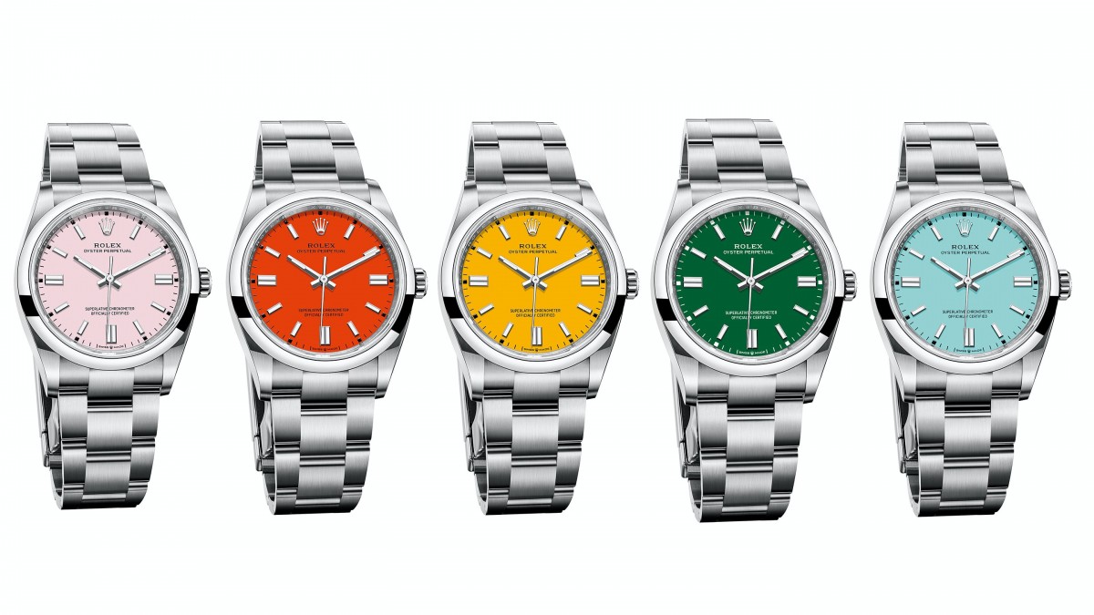 Oyster Perpetual今年除了調整系列的錶徑大小,還一口氣新增了粉紅、綠松石、黃、珊瑚紅及綠等五種漆面面盤,其中又以輝映綠水鬼精神的綠面最受市場喜愛。Oyster Perpetual 41mm的124300定價相較水鬼顯得親切許多(5600歐元),台灣定價還不到20萬台幣,過去這款勞力士入門錶受到的關注只能說是一般般,價格相對親切、入手也很容易,不過2020年換上漆面的這批新作顯得來勢洶洶,一推出就受到市場矚目。