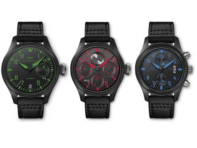 沙夫豪森IWC萬國錶一舉推出三款全新專賣店特別版手錶,為其飛行員系列Top Gun海軍空戰部隊麾下再添新成員。一款大型飛行員萬年歷手錶、一款大型飛行員手錶以及一款飛行員計時手錶均蓄勢待發,並為該系列帶來了醒目色彩。這三款全新錶款分別採用紅色、綠色以及藍色的指針和時標,令人耳目一新。在全球IWC萬國錶專賣店限量發售,伴您一飛沖天。