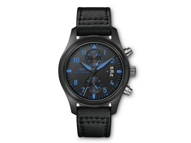 飛行員系列Top Gun海軍空戰部隊計時手錶專賣店特別版(型號IW388003)配備藍色指針和時標,具有防磁保護裝置以及可抵御驟降氣壓的玻璃錶鏡,是進行複雜空降演習的理想之選。此外,這款手錶還以其內在價值深受好評:搭載IWC萬國錶自製89365型機芯,可提供68小時的動力儲備。面盤採用經典駕駛艙設計,日期顯示亦與測高儀的外形十分相近。中央計時指針可顯示準確至秒的計時記錄,12點鐘位置的小面盤則顯示分鐘運行時間。借助一體式飛返功能,只需按下重置按鈕,計時指針便會歸回零位,並可隨即開始新的計時。6點鐘位置設小秒針持續運轉,指示手錶運作正常。錶底的Top Gun徽章圖案及限量發售僅五百枚表明該手錶不可多得,絕非人人都可擁有。