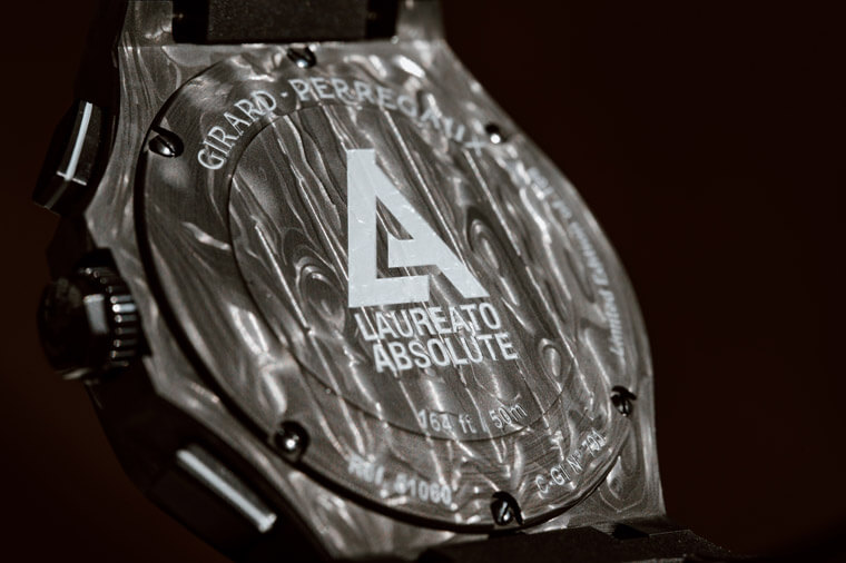 Laureato系列Absolute Crystal Rock搭載GP自製的GP03300-1058自動機芯,機芯共由419枚零件組成,複雜度超過一般手錶,其主要規格如震頻28,800轉、寶石數63石以及46小時的動力儲存,都展現高級製錶的規格。