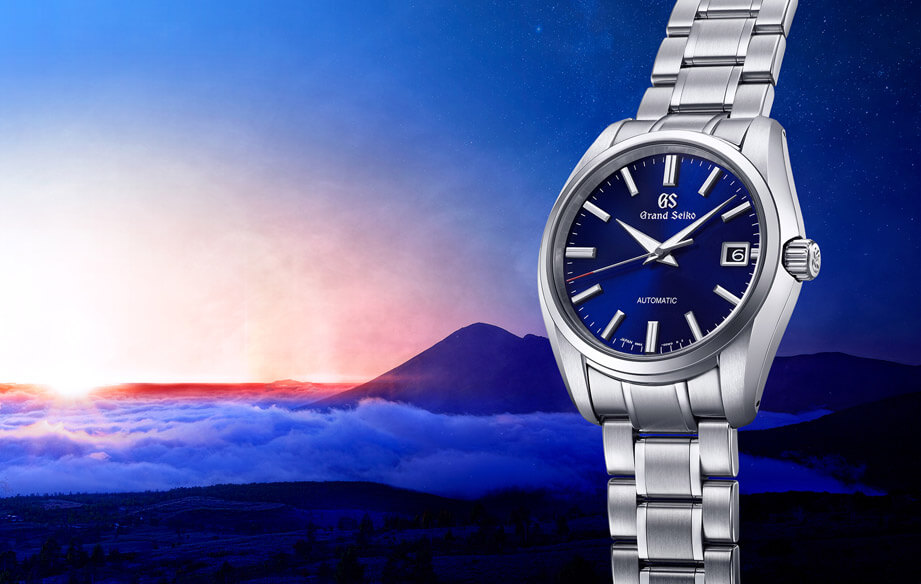 翻到錶背會發現手錶採用透明底蓋,而且你還會注意到很不一樣的自動盤樣式,原來GRAND SEIKO以日本岩手縣負責組裝9S機械機芯的「雫石高級時計工坊」附近的岩手山日出風景為參考範本,將這種朝霞畫面轉化為藍色自動盤以及底蓋邊緣的紅圈,藍色代表天空尚未全亮的時刻,而紅色則是象徵破曉霞光所照射出的火紅雲層,GRAND SEIKO這次的設計乃是將具象景色透過抽象的色彩表達方式詮釋,以低調但是寓意深遠的形式點出手錶與日本傳統製錶工藝的深刻連結。