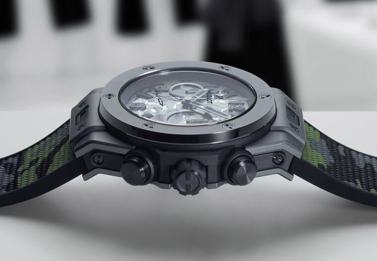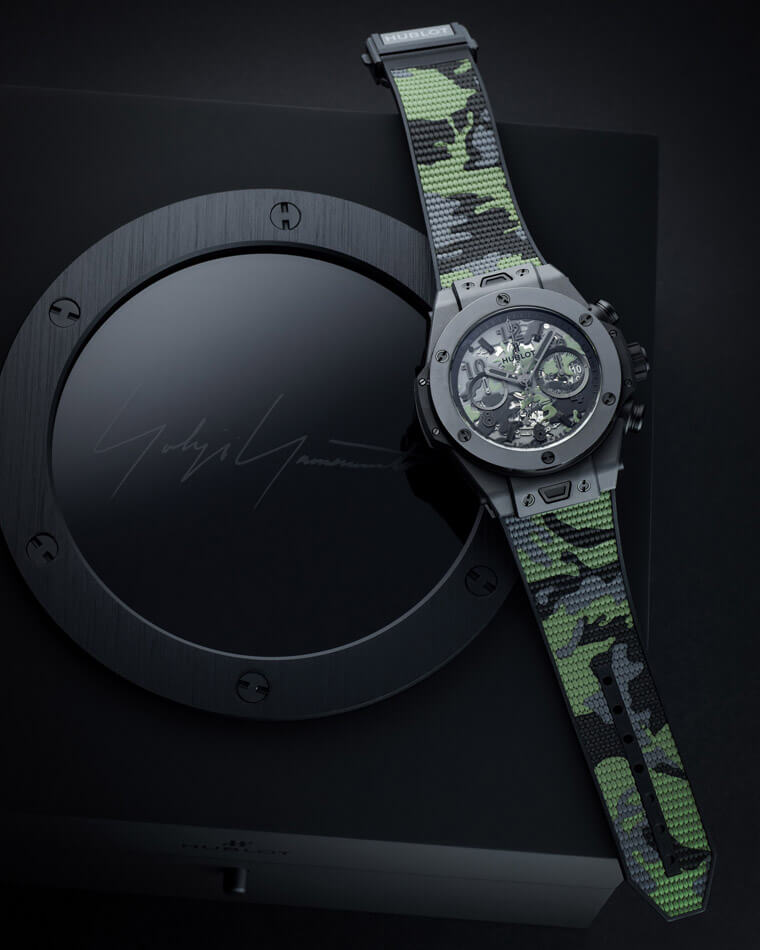 HUBLOT宇舶曾在2020年5月與日本設計界大腕山本耀司(Yohji Yamamoto)合作開發聯名手錶Big Bang GMT全黑山本耀司限量版手錶,那款錶以Big Bang GMT為基礎,結合宇舶與山本耀司都很崇尚的All Black風格呈現出迷人的時尚感。沒想到雙方這款錶推出也才不過半年時間就又催生出第二款聯名手錶,這次新作改以宇舶招牌的複雜功能為主,並且跳脫全黑樣式,化身成潮味十足的Big Bang Unico迷彩山本耀司手錶。