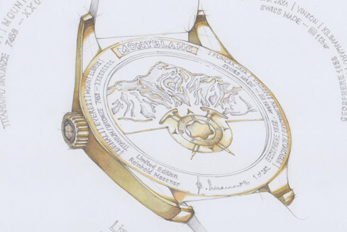 1858 Geosphere Meissner限量錶用以詮釋Messner的攻頂清單的設計在於錶背,實底蓋上刻有白朗峰圖案、Messner攻頂清單路線、指南針以及兩支交叉的冰鎬等與登山探險相關的元素,而Reinhold Messner的簽名字樣也就刻在錶背一隅,透過登山傳奇的加持,彷彿也讓這款錶多了一種可以與大師為伍的特質。