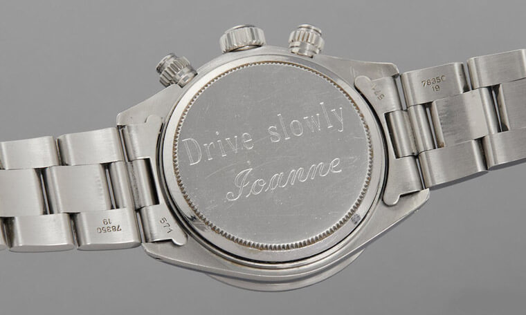 ▲Ref. 6263底蓋刻有”Drive slowly Joanne”字樣,展現妻子對丈夫的叮嚀與關懷。Source:Phillips