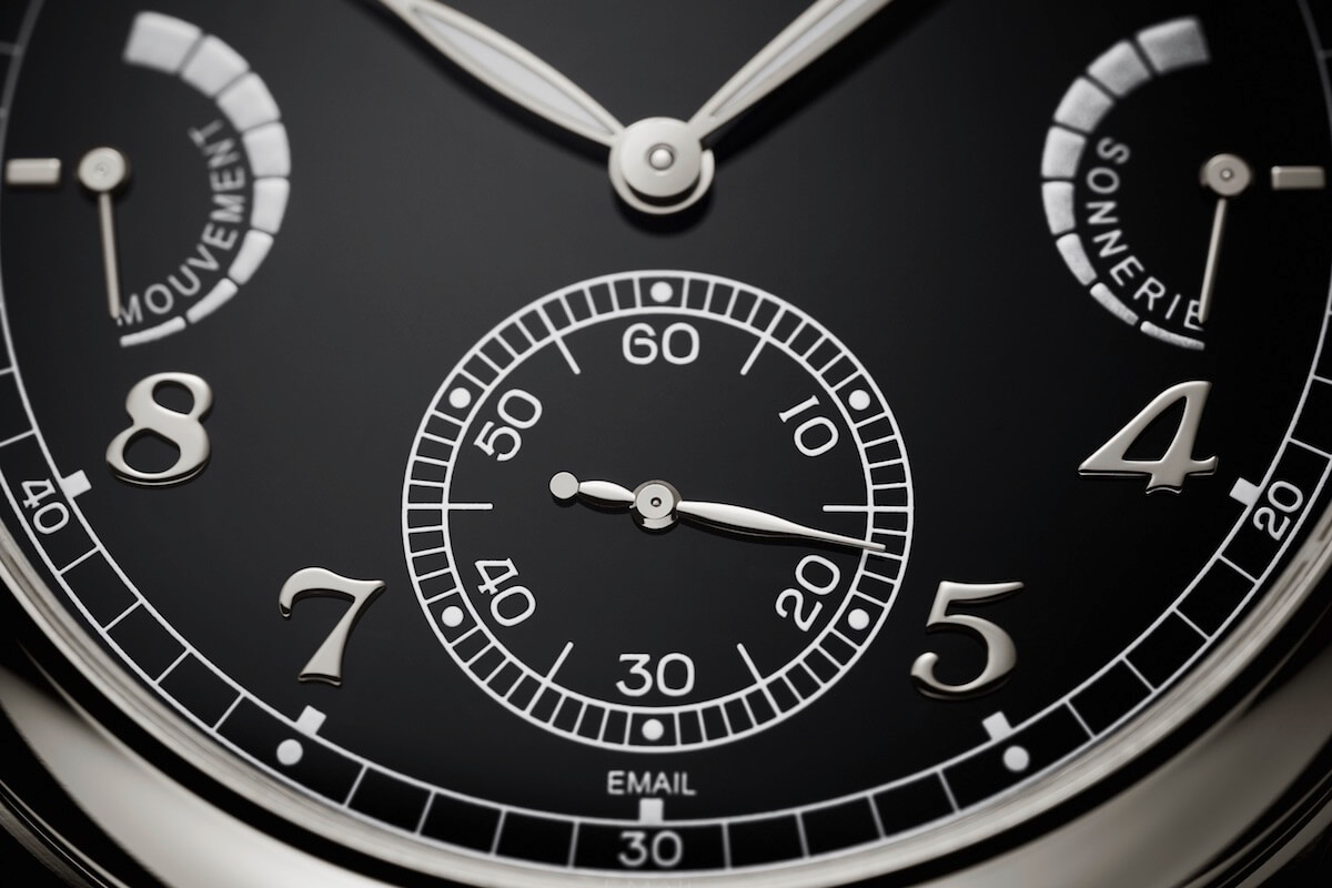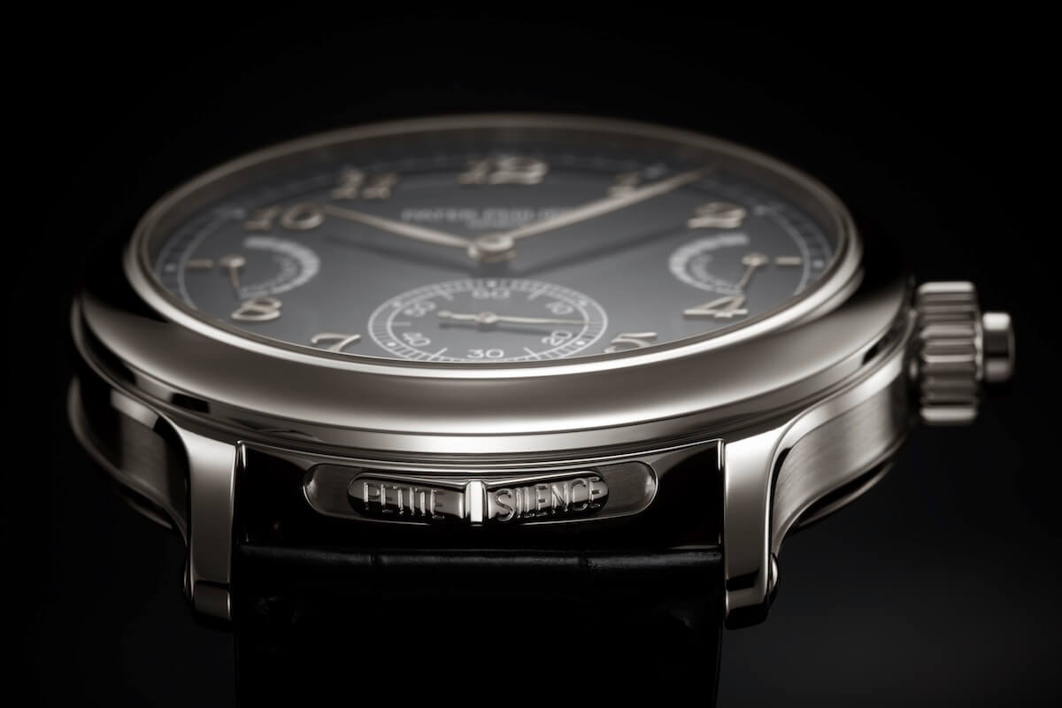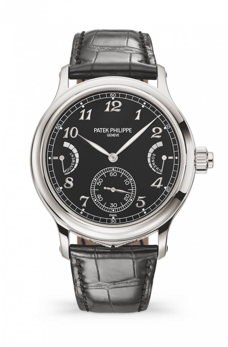 這是百達翡麗歷史上第一次推出大自鳴手錶,能夠自動響報小時及刻鐘,聲音清澈響亮。這個頂級複雜功能搭配小自鳴、三問功能及小三針專利跳秒顯示,全新機芯由七百零三枚零件組成,搭配鉑金錶殼和黑色大明火琺瑯錶面。