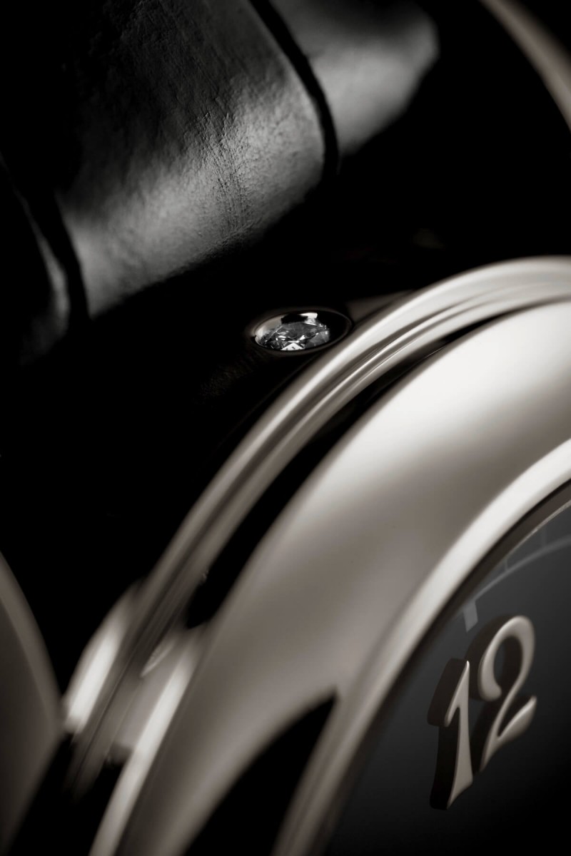 百達翡麗堅持一大原則,就是頂級複雜時計也要適合日常佩戴。全新編號 6301P 大自鳴腕錶貫徹這份信念,精工細節超群出眾。鉑金錶殼設計靈感,源自2015年編號 5370 雙秒追針計時碼錶。錶身弧線與渾圓輪廓巧妙勻稱,凹面錶環與寶石玻璃略拱鏡面和凹面倒角磨拭錶側銜接無間。新款腕錶一如所有百達翡麗鉑金錶殼,錶身鑲有一顆小鑽石,但鑑於錶殼6時位置設有滑動桿開關選取打簧模式,鑽石則鑲於12時位置。