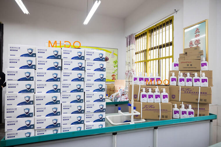 ▲美度為學校師生提供了眾多抗疫物資,包括口罩、酒精消毒液等等。