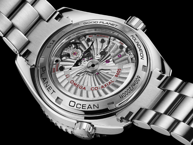 這款手錶搭配經典不鏽鋼錶鏈與休閒感的藍色橡膠錶帶,並配置獨有的歐米茄8605同軸機芯,底蓋更鐫刻GoodPlanet Foundation字樣,是品牌向GoodPlanet致敬之作,頌揚組織對保護環境的不懈努力和重要影響。此手錶更備有以天然竹子製成的獨特錶盒,完整呈現環保精神。