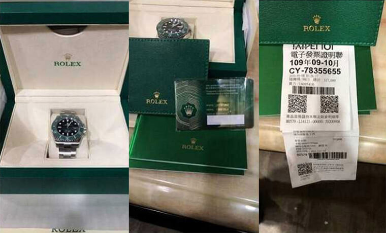 你可能會想說閱錶無數的店家怎麼會這麼容易就被騙,但其實根據網路上流傳的遭騙店家提供照片來看,這只假的126610LV做得實在有夠真,除了基本的錶盒、說明書之外,連勞力士剛剛改款的最新版保卡也備齊了,還有另一個陷阱在於這名詐欺嫌犯連101開出的發票都附上了,看到這些完整的配備讓人輕易卸下心防,先入為主地以為貨源沒問題,結果換來一場被詐騙的悲劇。