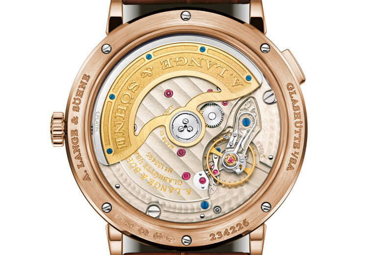 L086.8機芯以局部鏤空K金自動盤搭配950鉑金製成的離心輪以及滾珠軸承來優化手錶的上鍊效能,機芯藉由一枚發條盒可以輸出72小時動能。除此之外,朗格招牌的機芯工藝與特色如未經處理的德國銀材質、飾有格拉蘇蒂紋的3/4夾板、鵝頸式微調系統、手工雕刻擺輪夾板等等都保持著品牌的優良傳統。