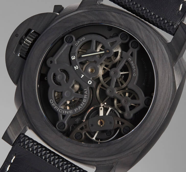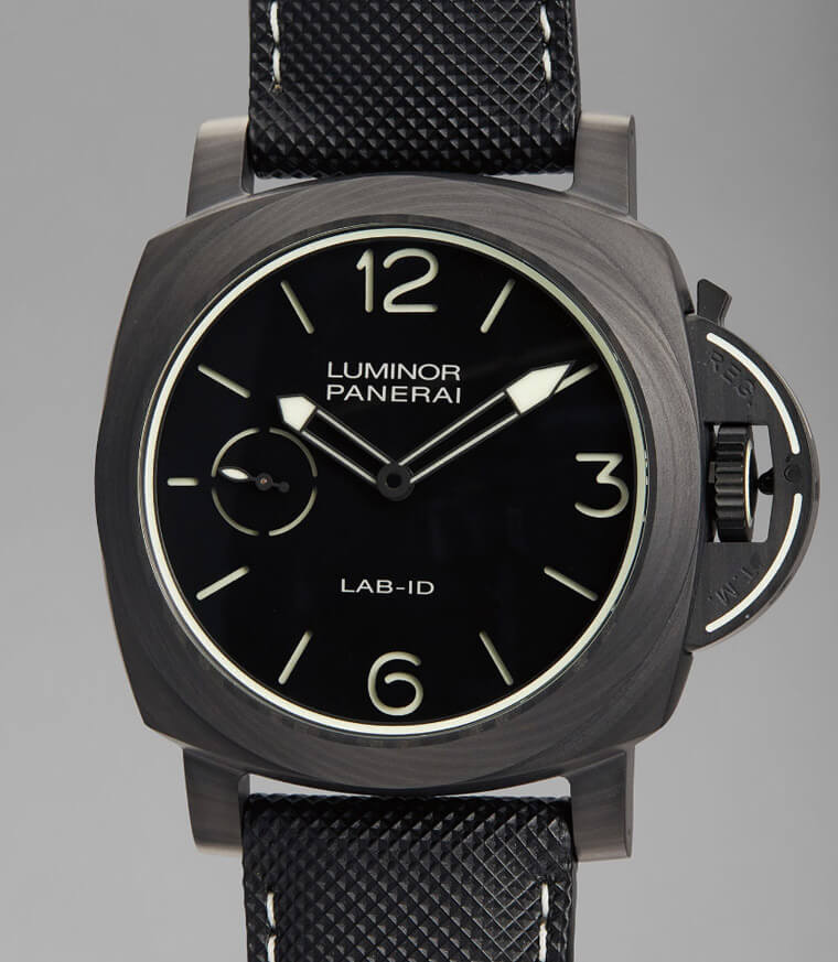與其他拍場競拍的作品有點不同,LAB-ID PAM1700乃是一款全新的手錶,它的前身是PANERAI在2017年所推出的LAB-ID PAM00700,PAM00700當年一推出立刻引起市場轟動,因為手錶以Carbotech碳纖維材質打造的49mm本身就很有存在感,加上它的面盤以納米碳管鍍膜包覆塑造出有別過往黑色面盤的視覺效果,還有機芯結構結合碳的獨有特質,使夾板、橋板、發條盒、擒縱裝置及避震裝置都以能自行潤滑及乾燥的物料組成,讓當時的沛納海敢打出手錶保固50年的豪語,打破市場對於保固年限的想像空間。