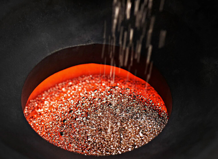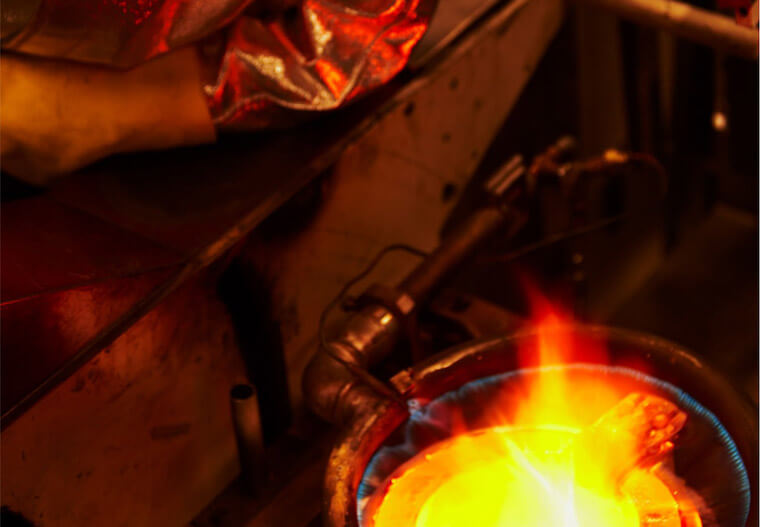 鑄造第一階段先以高溫燒熔金屬成為液體
